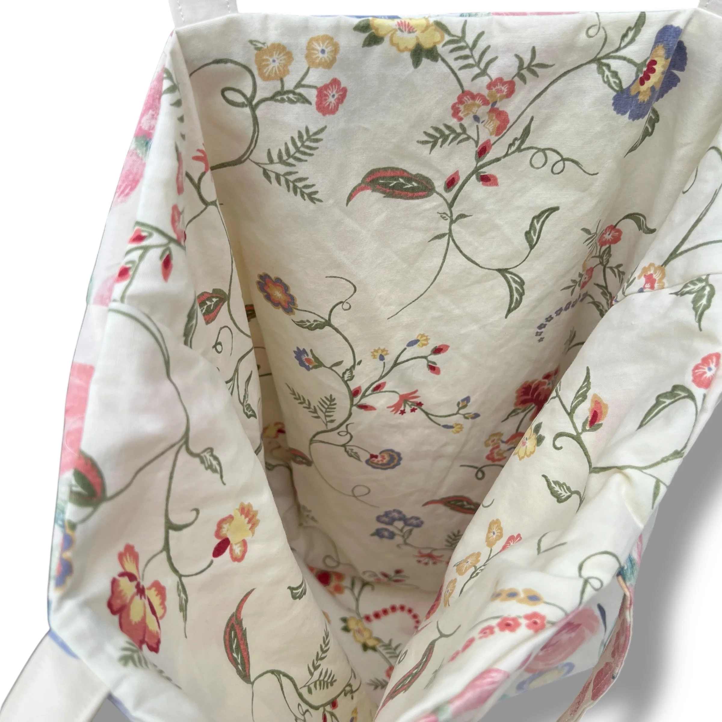 Adorable floral tote bag made from upcycled secondhand pillowcases for the perfect sustainable gift!